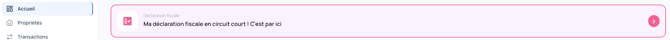 Si vous souhaitez ajouter votre propriété et y associer directement toutes vos transactions et documents utiles pour faire votre déclaration fiscale des revenus de l’année passée, sélectionnez le parcours « Ma déclaration fiscale en circuit court » sur la page d’accueil.