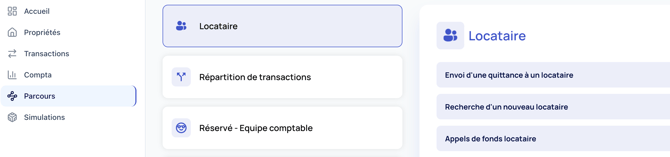 Pour générer un appel de loyer (ou un appel de charges, ou un dépôt de garantie), cliquez sur « parcours », puis sur « appels de fonds locataire ».